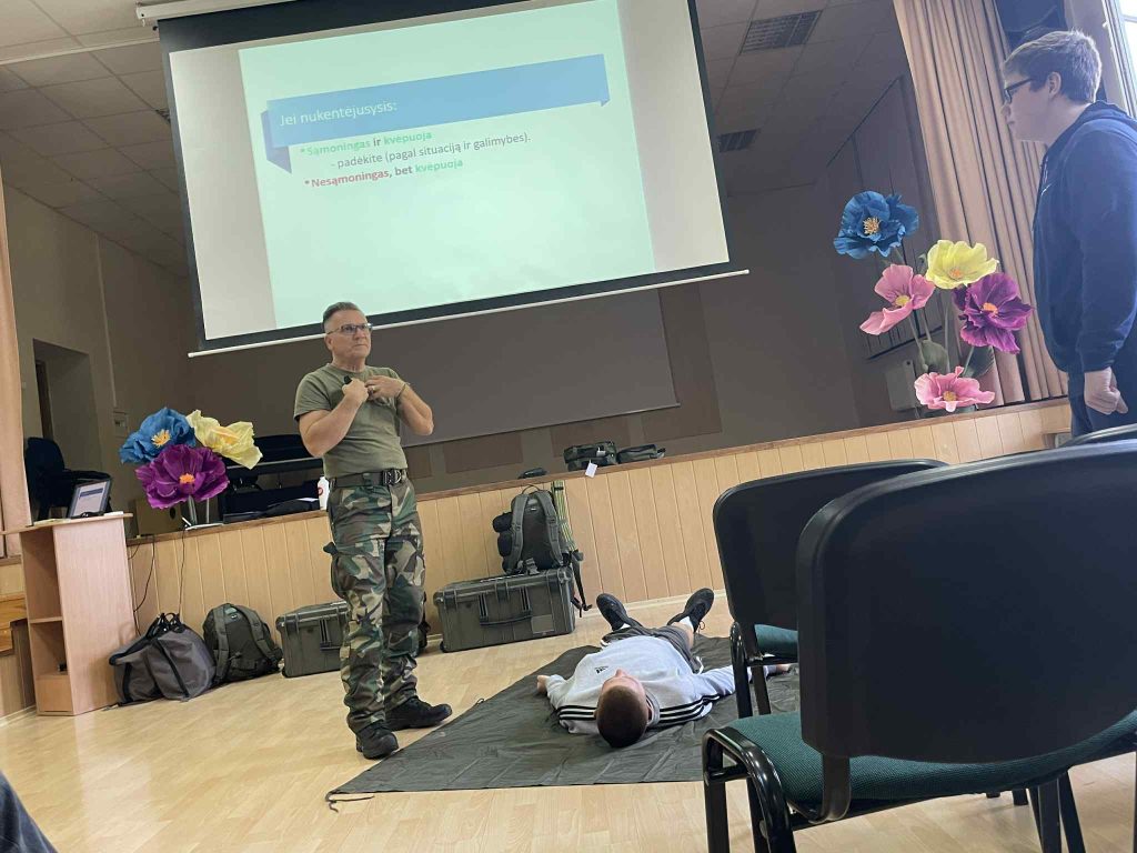 Gimnazijoje rugsėjo mėnesį startavo Pilietiškumo ir gynybos įgūdžių kursas, skirtas I G klasės mokiniams. Šis kursas – puiki proga jauniems žmonėms ne tik geriau suprasti savo vaidmenį valstybės gyvenime, bet ir praktiškai pasiruošti ekstremalioms situacijoms.