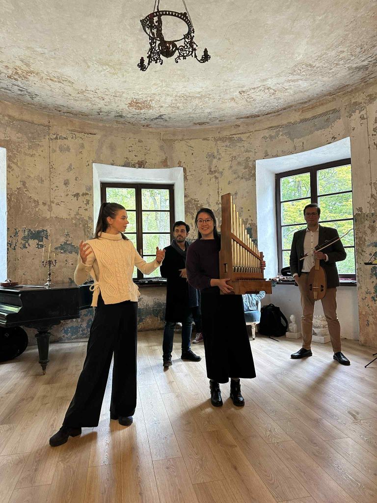 Iš įvairių pasaulio vietų kilę, šiuo metu Šveicarijos Bazelio universitete studijuojantys senosios muzikos atlikėjai atvyko į Šumsko dvarą, kad džiugintų žmones išnykusių, tačiau pagal skulptūras, piešinius atgamintų muzikos instrumentų skambesiu. Dvaro aplinka dar labiau sustiprino įspūdį ir įtraukė į dainų ir renesansinių šokių verpetą.