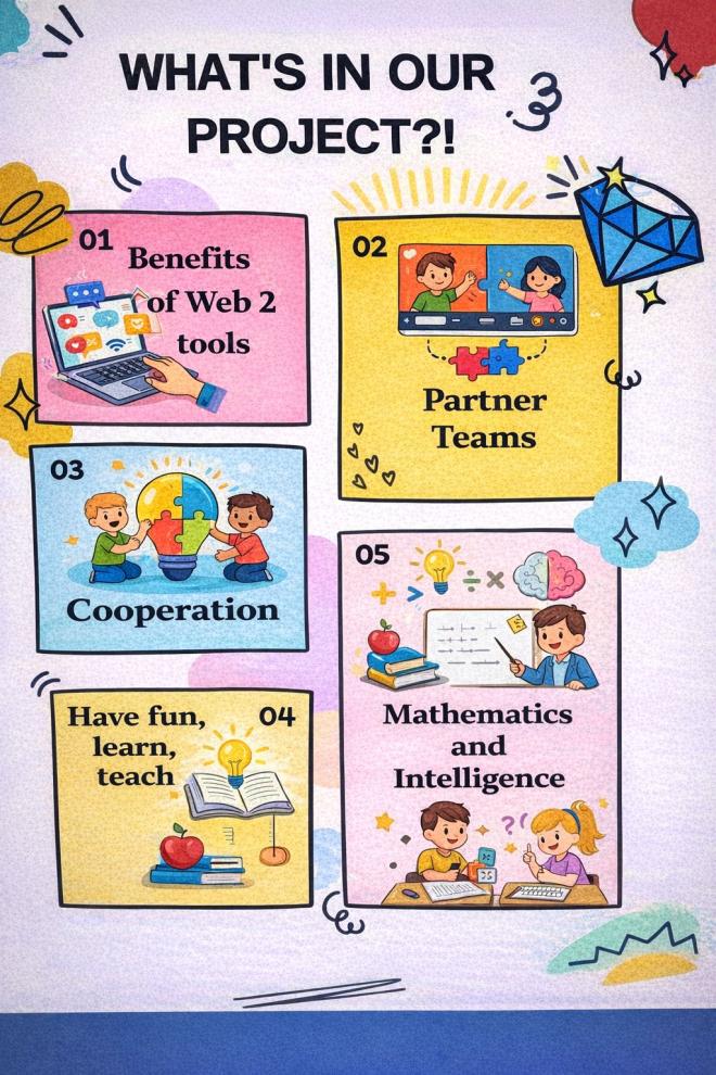 Nuo sausio mėnesio iki birželio mėnesio mūsų gimnazijos 4 klasės mokiniai kartu su mokytoja Ana Kairiene dalyvaus tarptautiniame eTwinning projekte „MATHEMATICS WORKSHOP WITH MIND GAMES“ („Matematikos dirbtuvės su proto žaidimais“).