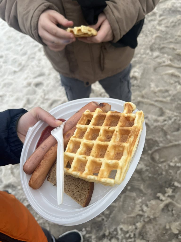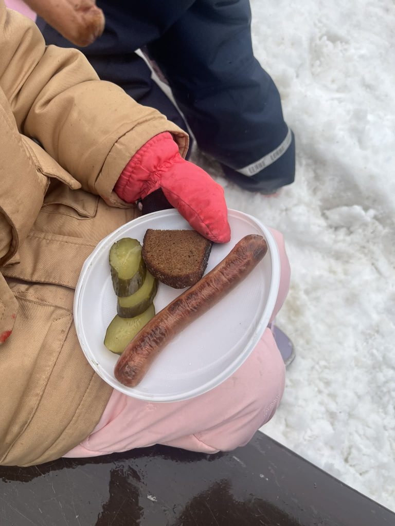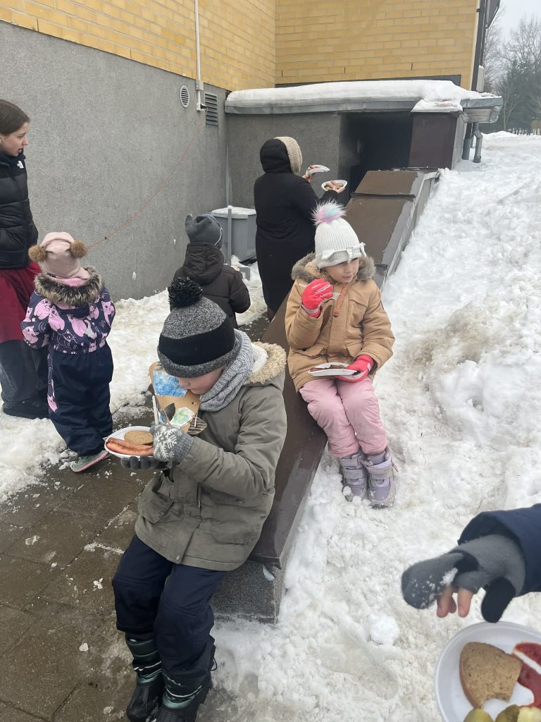 Po linksmybių visi vaišinomės gardžiais blynais, dešrelėmis ir kitais skanėstais. Šventės metu sklido gardus kvapas, o gimnazijos kiemas prisipildė juoko, pokalbių ir geros nuotaikos.