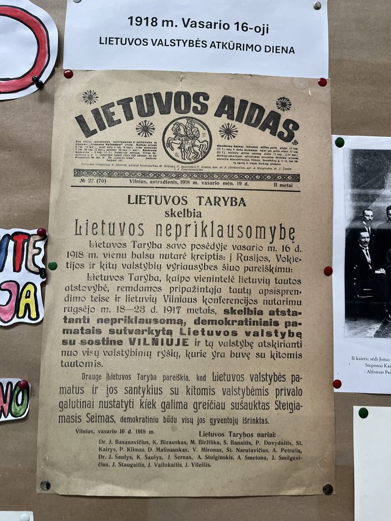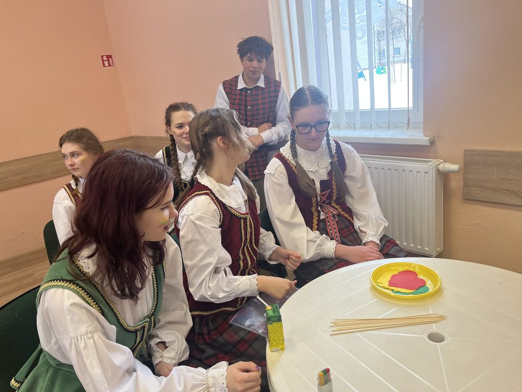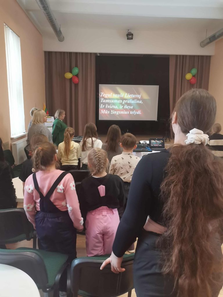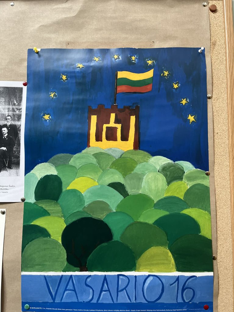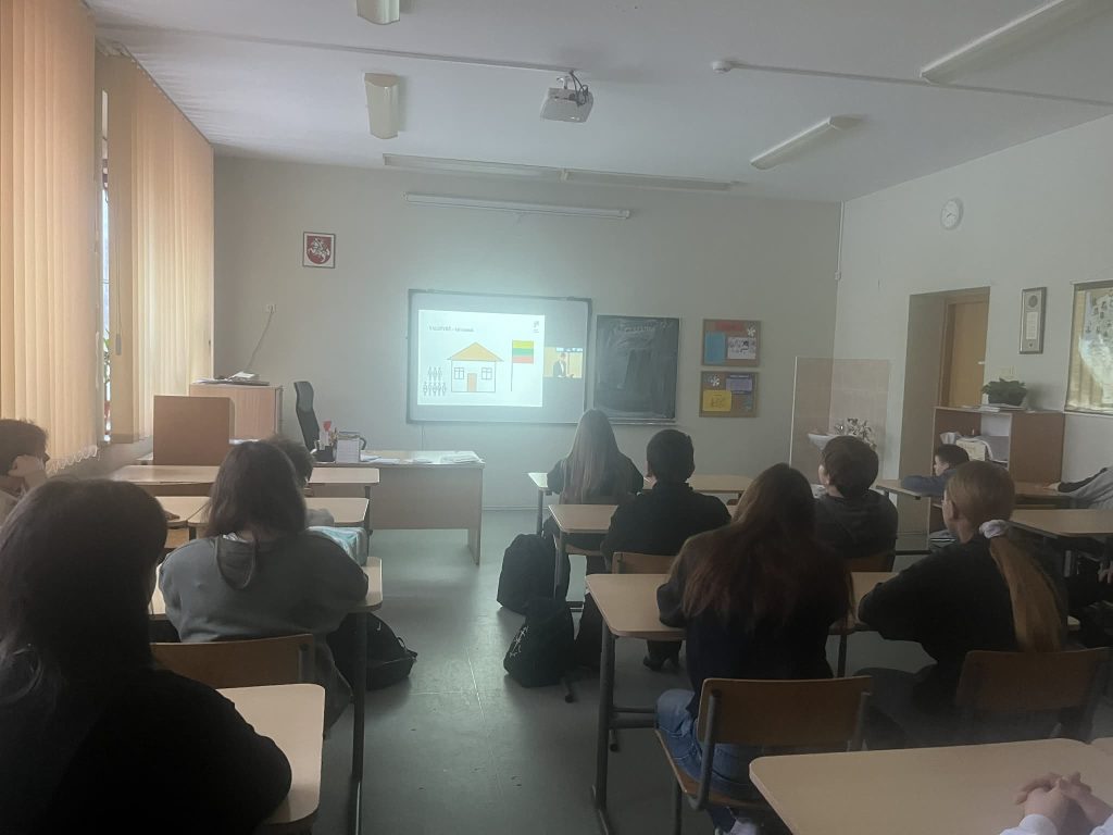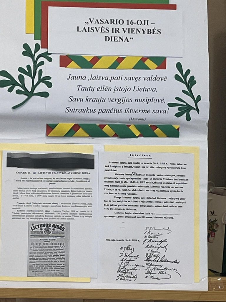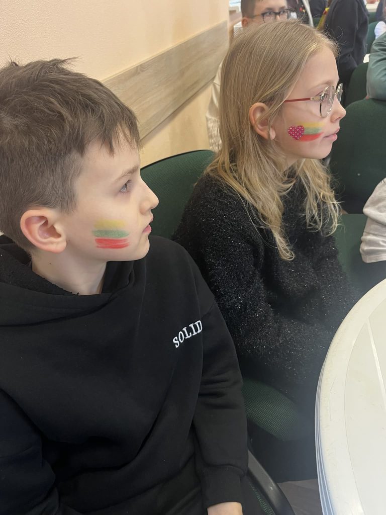 Ryte pirmoji pamoka buvo skirta Vasario 16-osios minėjimui. Mokiniai žiūrėjo trumpus filmus apie Lietuvos istoriją, valstybės atkūrimą ir laisvės kelią. Šie vaizdo įrašai padėjo geriau suprasti, kokią reikšmę turi ši šventė ir kokia kaina buvo iškovota mūsų nepriklausomybė.