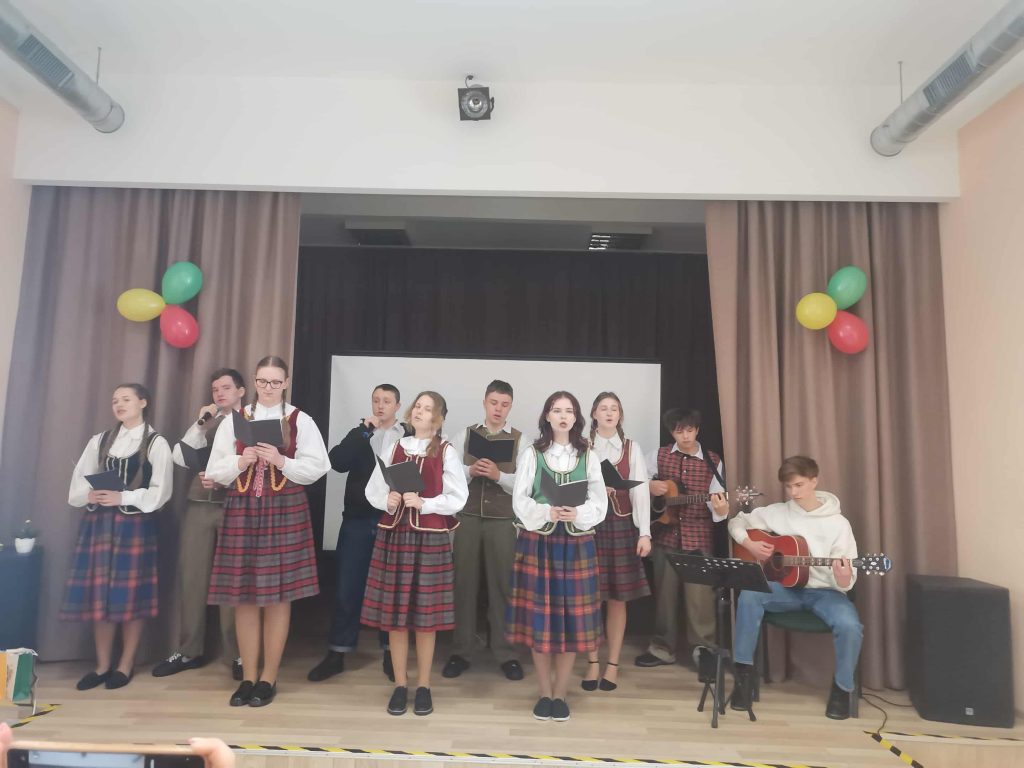 Vėliau dalis gimnazijos mokinių vyko į Kalvelių kultūros namus, kur buvo surengtas bendras Vasario 16-osios minėjimas kartu su vietos bendruomene. Renginio metu skambėjo dainos apie Lietuvą, šokome lietuvių liaudies ratelius ir prisiminėme svarbiausius mūsų tautos istorijos momentus.