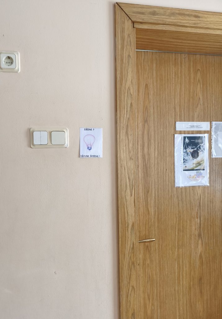 Skatinamos ir diskusijos apie energijos taupymą bei atsinaujinančių energijos išteklių naudojimą. Mokiniai dalyvauja akcijoje „Išjunk, jei gali“, kurios metu mokosi sąmoningai vartoti energiją. Pagal „GLOBE“ programą pamokose žaidžiamas edukacinis žaidimas „Klimato kaitos svarstyklės“. Jo metu mokiniai sužino apie savo anglies dvideginio (CO₂) pėdsaką, analizuodami kasdienius pasirinkimus – transportą, maistą ar net drabužius.
