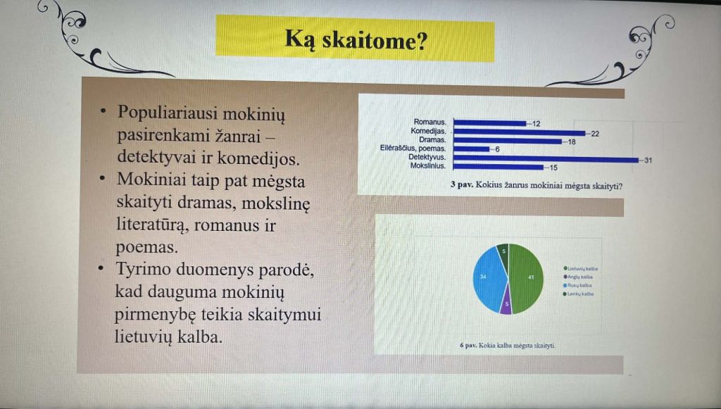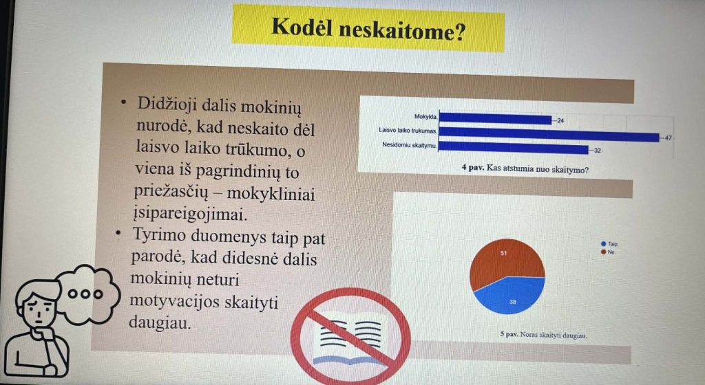 Ši iniciatyva parodė, kad bendradarbiavimas ir kūrybiškumas gali padėti pažvelgti į skaitymą naujai. Tai buvo ne tik tyrimo pristatymas, bet ir bendras patyrimas, skatinantis moksleivius mąstyti, diskutuoti ir atrasti savo asmeninį skaitymo kelią.