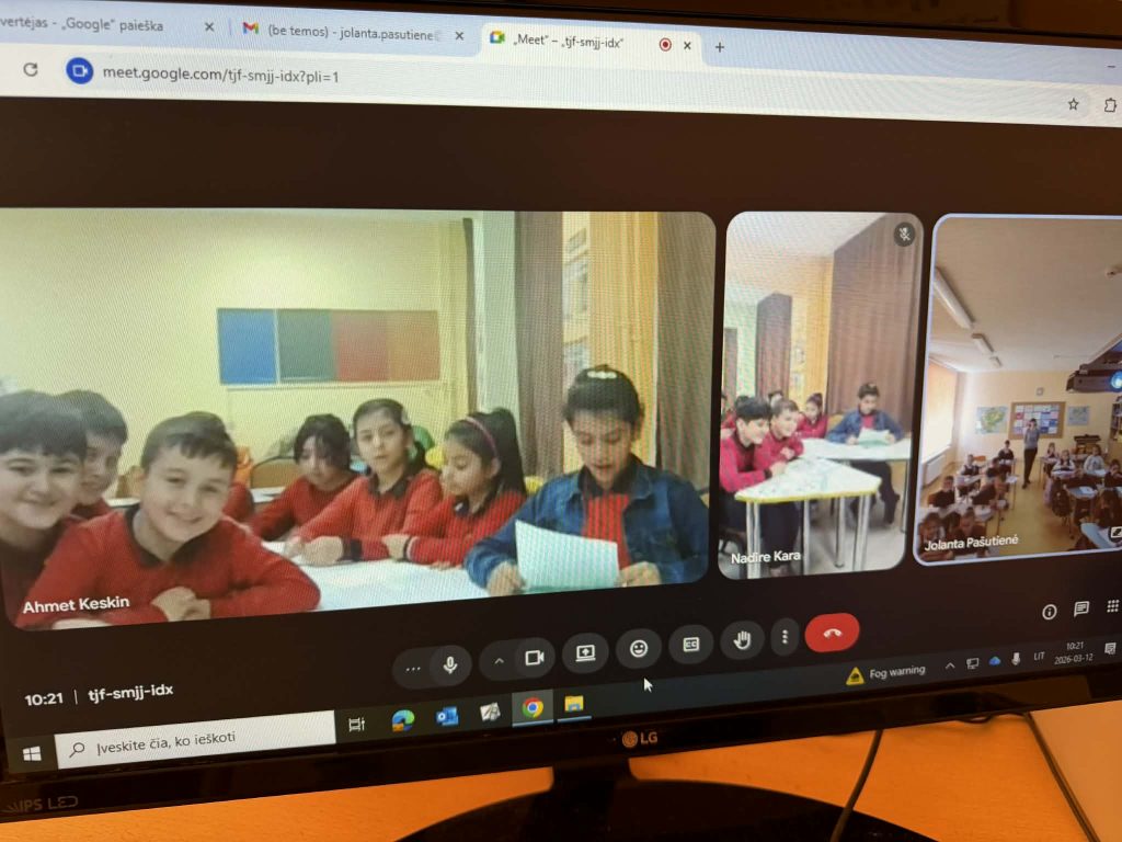 Nuoširdžiai dėkojame anglų kalbos mokytojai Barbarai Duden už pagalbą bendraujant su projekto dalyviais. Mokytoja padėjo versti mokinių ir mokytojų pasisakymus, paaiškino sudėtingesnius klausimus bei užtikrino, kad visi susitikimo dalyviai galėtų suprasti vieni kitus. Jos pagalba leido vaikams jaustis drąsiau ir aktyviau dalyvauti pokalbyje, o bendravimas tarp Lietuvos ir Turkijos mokinių tapo dar sklandesnis ir prasmingesnis.