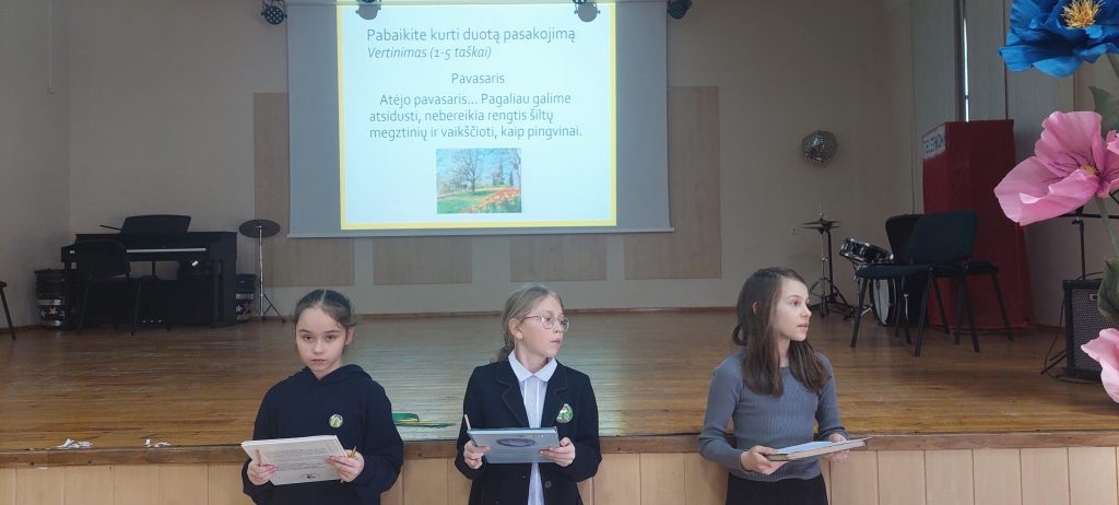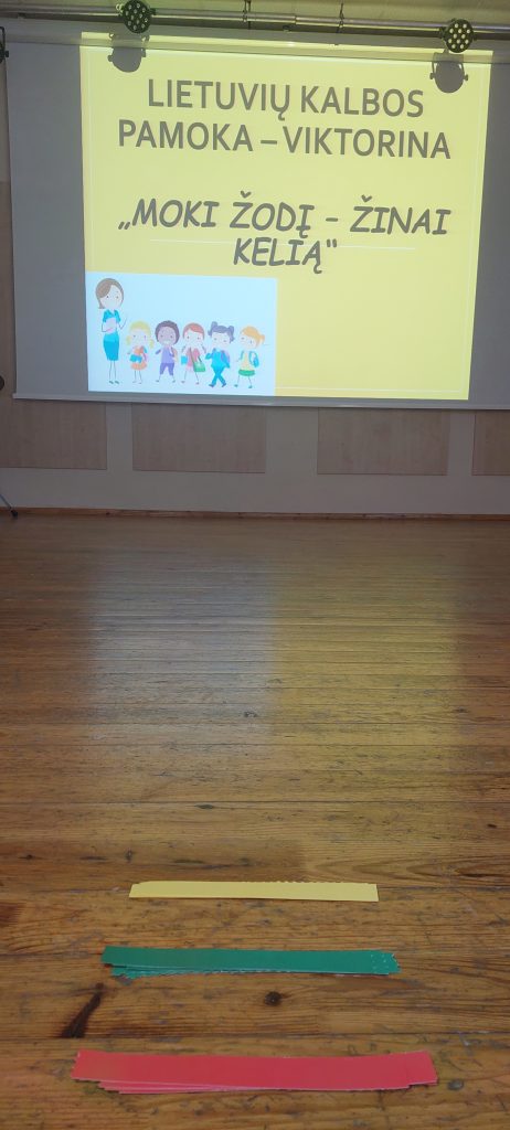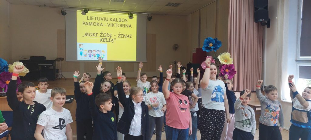 Minint lietuvių kalbos dienas mokykloje vyko smagi ir prasminga viktorina „Moki žodį – žinai kelią“, kurioje dalyvavo 3 ir 4 klasių mokiniai. Vaikai buvo suskirstyti į tris komandas pagal Lietuvos vėliavos spalvas – geltoną, žalią ir raudoną. Kiekviena komanda išsirinko kapitoną, sugalvojo savo komandos pavadinimą ir šūkį.