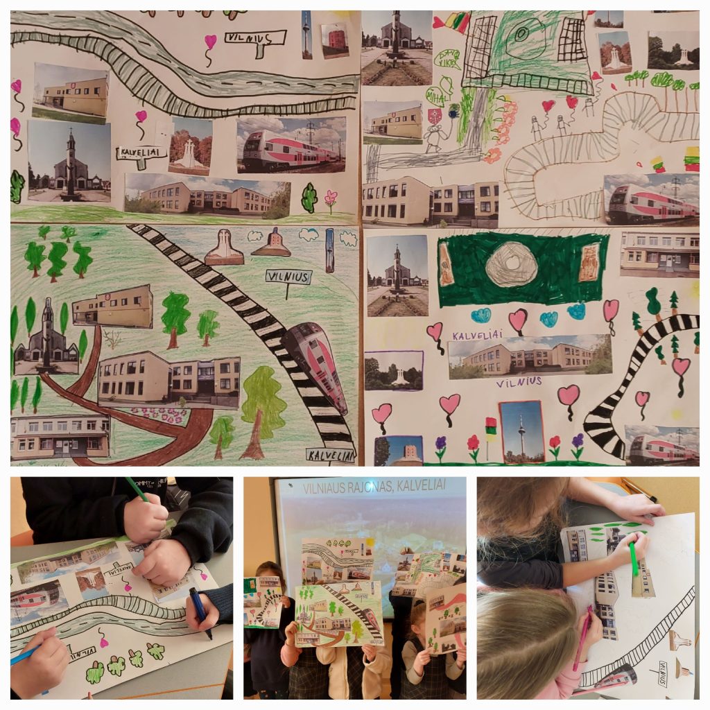 Pamokų metu vaikai aptarė reikšmingiausias Kalvelių vietas ir objektus. Susibūrę į grupeles jie sukūrė koliažą „Mano gimtasis kaimas – Kalveliai“, kuriame pažymėjo bažnyčią, savo gimnaziją, geležinkelio stotį ir kitus svarbius objektus. Vėliau klasėje mokiniai pristatė savo kūrybinius darbus ir papasakojo, kuo jų pažymėtos vietos yra svarbios ir reikšmingos vietos bendruomenei.