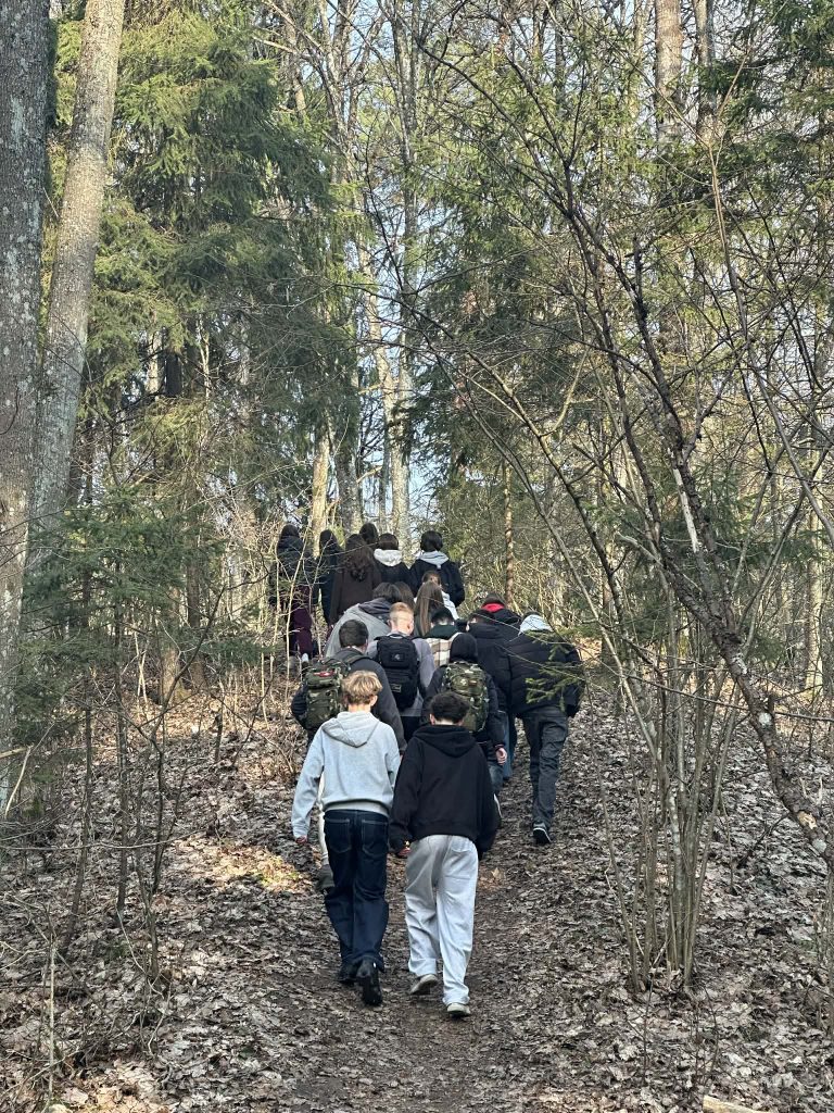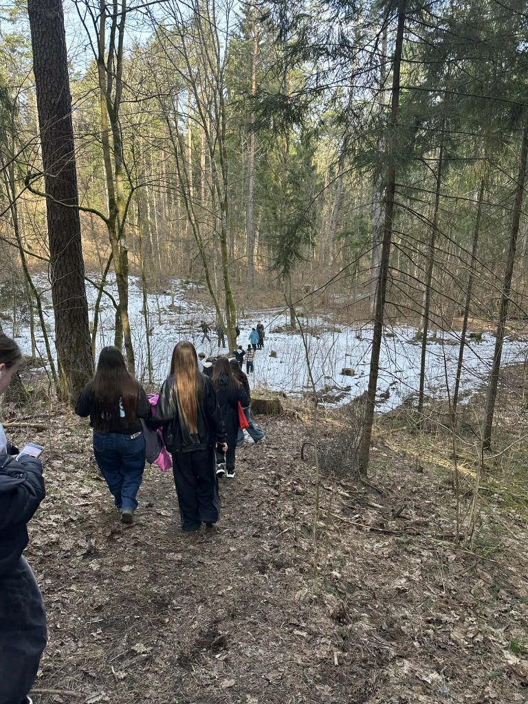 Kovo 17 dieną abiejų gimnazijų I G klasių mokiniai ėjo Sapieginės pažintiniu taku, klausydamiesi garsinės knygos – Dalios Grinkevičiūtės atsiminimų „Lietuviai prie Laptevų jūros“ ištraukų. Šis literatūrinis pasirinkimas padėjo giliau suvokti istorinius kontekstus, stiprino empatiją ir skatino refleksiją apie žmogaus patirtis sudėtingomis sąlygomis. Sapieginės takas pasirinktas ne atsitiktinai – mokiniai galėjo pro grotas pažvelgti į bunkerius ir įsivaizduoti, koks esti gyvenimas be patogumų. Mokiniai atliko parengtas užduotis: pateikė faktų iš klausytų ištraukų, aptarė emocijas, kurias sukėlė skaitytos ištraukos.