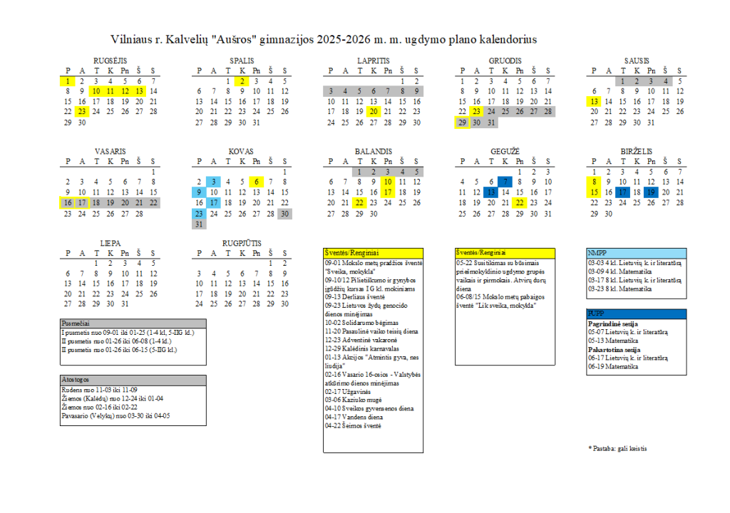 KLASIŲ VALANDĖLIŲ TVARKARAŠTIS